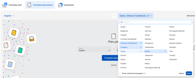 Die PDF-Übersetzung unterstützt jetzt zwei Ausgabeformate: PDF und .DOCX.