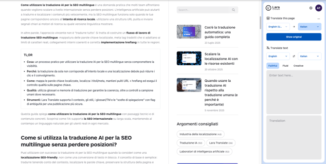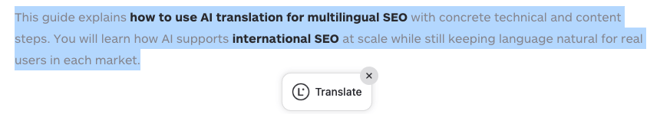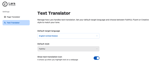 If page translation is unavailable, you can still translate specific content using the Text Translator or by copying text into Lara.