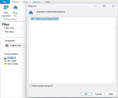 In Trados Studio, vai su Add-Ins → Plugin e attiva Trados-Lara-Plugin-2024.
